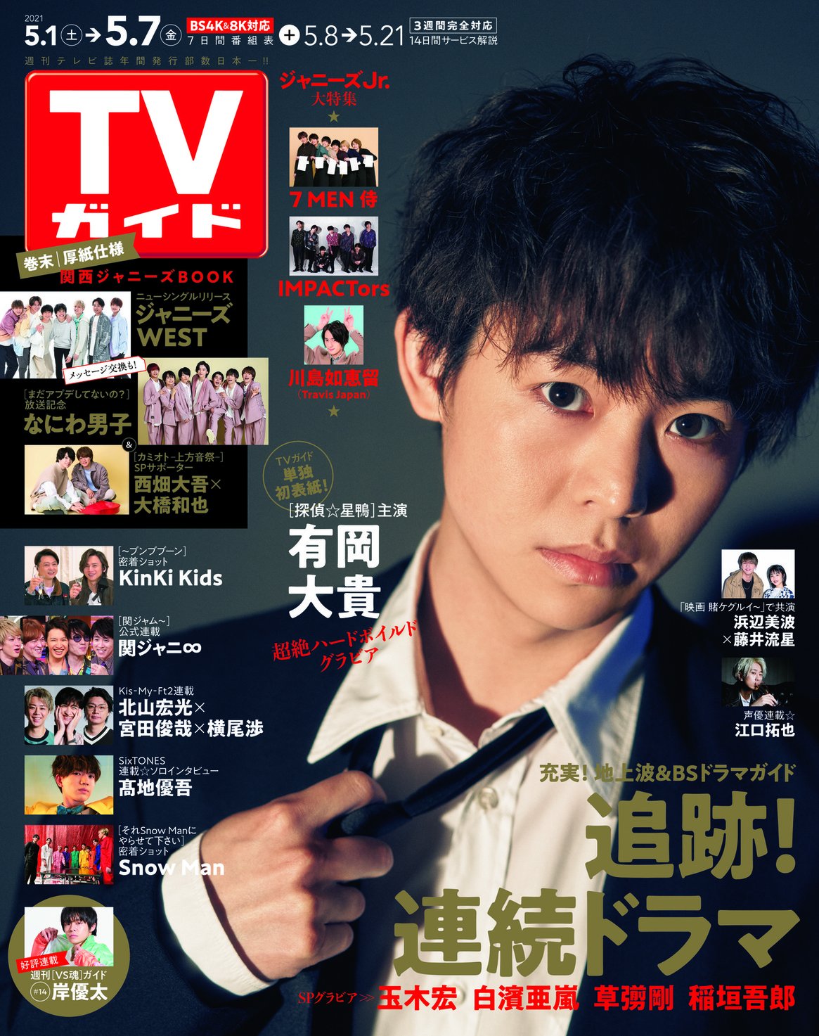 / #有岡大貴 が表紙の #TVガイド 5/7号は 4/28(水)発売😎 \ #KinKiKids #VS魂 #岸優太 #関ジャニ∞ #KisMyFt2 #北山宏光 #宮田俊哉 #横尾渉 #SixTONES #髙地優吾 #SnowMan #浜辺美波 #藤井流星 #江口拓也 #ジャニーズWEST #なにわ男子 ...