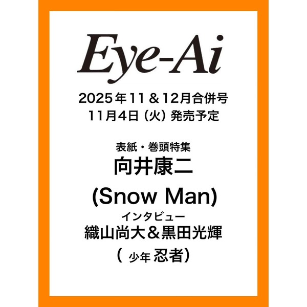2025年11月4日(火) 「Eye-Ai 11&12月合併号【表紙:向井康二(Snow Man)】 (11&12月合併号)」に向井康二が掲載されます。