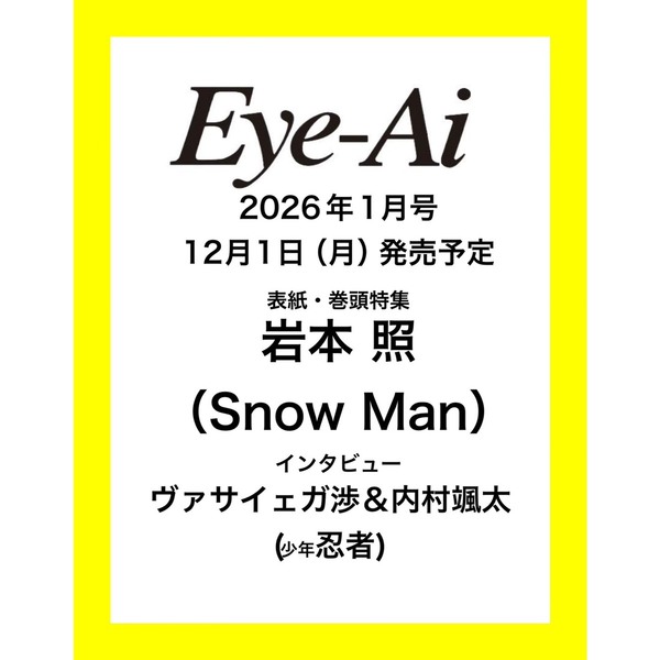 全まとめTV出演雑誌掲載公式YouTubeメンバー個別ページ過去出演番組雑誌予約早見表 【雑誌】12/1(月) 岩本照「Eye-Ai 2026年1月号【表紙:岩本照】」発売スポンサーリンク雑誌 2025.11.212025年12月1日(月) 「Eye-Ai 2026年1月号【表紙:岩本照】」に岩本照が掲載されます。表紙・巻頭特集:岩本照Eye-Ai 2026年1月号【表紙:岩本照】Eye-Ai 2026年1月号【表紙:岩本照】created by Rinker 表紙・巻頭特集:岩本照Amazon楽天市場Yahooショッピングセブンネットタワレコ一覧まとめSnow Man 11月テレビ一覧Snow Man 11月全スケジュールまとめ雑誌予約まとめトップページ