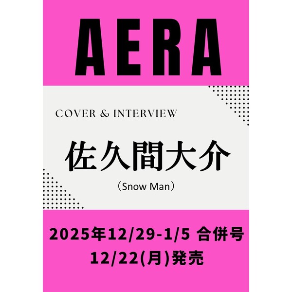 全まとめTV出演雑誌掲載公式YouTubeメンバー個別ページ過去出演番組雑誌予約早見表 【雑誌】12/22(月) 佐久間大介「AERA (アエラ) 2025年 12/29-1/5 合併号」発売スポンサーリンク雑誌 2025.11.252025年12月22日(月) 「AERA (アエラ) 2025年 12/29-1/5 合併号」に佐久間大介が掲載されます。【表紙&グラビア+ロングインタビュー】佐久間大介AERA (アエラ) 2025年 12/29-1/5 合併号AERA (アエラ) 2025年 12/29-1/5 合併号created by Rinker 【表紙&グラビア+ロングインタビュー】佐久間大介KindleAmazon楽天市場Yahooショッピングセブンネットタワレコ一覧まとめSnow Man 11月テレビ一覧Snow Man 11月全スケジュールまとめ雑誌予約まとめトップページ