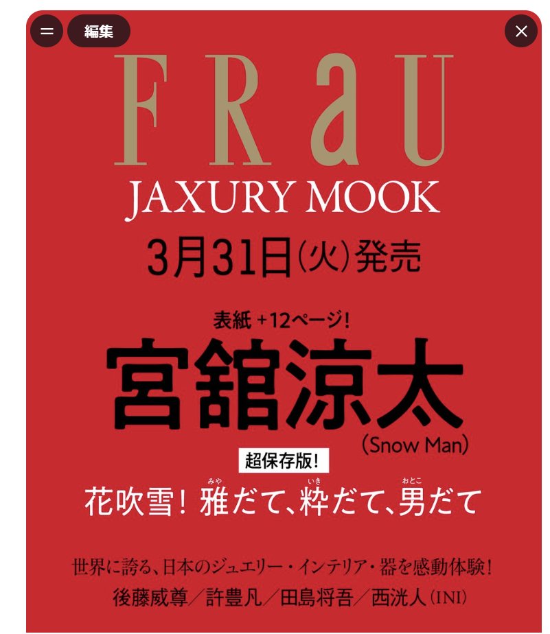 【雑誌】3/31(火) 宮舘涼太「FRaU MOOK JAXURY 2026」発売