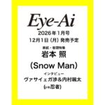 雑誌【雑誌】12/1(月) 岩本照「Eye-Ai 2026年1月号【表紙:岩本照】」発売 2025年12月1日(月) 「Eye-Ai 2026年1月号【表紙:岩本照】」に岩本照が掲載されます。 表紙・巻頭特集:岩本照 Eye-Ai 2026年1月号【表紙:岩本照】 2025.11.21雑誌岩本 照