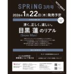 雑誌【雑誌】1/22(木) 目黒蓮「SPRiNG(スプリング) 2026年3月号」発売 2026年1月22日(木) 「SPRiNG(スプリング) 2026年3月号」に目黒蓮が掲載されます。 【表紙&ピンナップ】目黒蓮 SPRiNG(スプリング) 2026年3月号 2025.11.22雑誌目黒 蓮